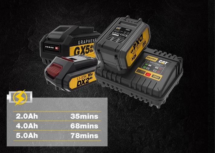 • 30mins charging 2.0Ah battery pack
