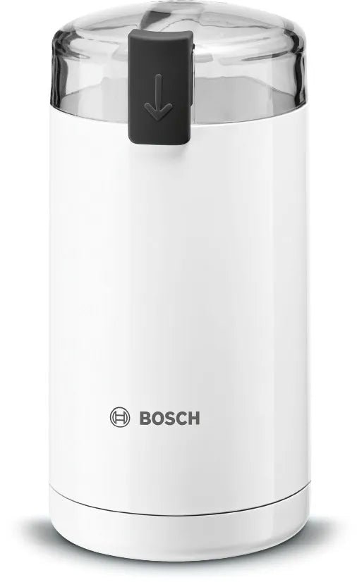 • The Bosch Coffee Grinder TSM6A011W is a sleek and efficient appliance designed for coffee enthusiasts who appreciate freshly ground beans. Its compact design makes it an ideal fit for any kitchen, while the powerful motor ensures a consistent grind every time. The grinder features a durable stainless steel chopping blade that is perfect for both fine and coarse grinds, allowing you to brew coffee to your exact preference. The transparent lid lets you monitor the grinding process, ensuring you achieve the desired consistency. With a safety switch that prevents operation without the lid, it is both safe and easy to use. The Bosch Coffee Grinder is a must-have for those who enjoy the rich aroma and full flavor of freshly ground coffee.