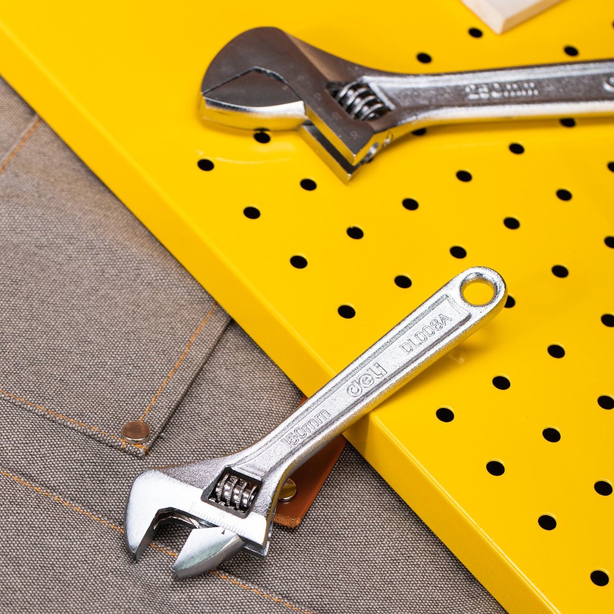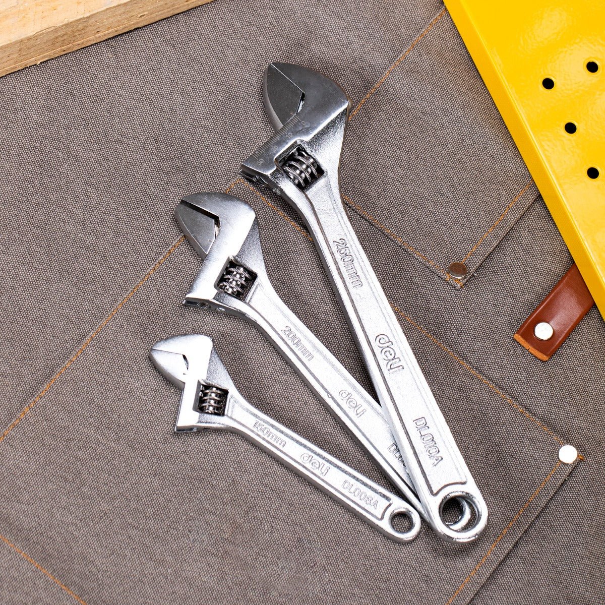 • The Deli 3PCS Adjustable Wrench Set EDL006A-3 is a versatile and essential toolset for both professional and personal use. Comprising 6″, 8″, and 10″ wrenches, this set is crafted from 45 Steel, ensuring high strength and longevity. The precision screw design allows for smooth adjustments and efficient operation, making it ideal for a variety of tasks. The wrenches are chrome-plated, enhancing their resistance to corrosion and maintaining an aesthetically pleasing finish. Packaged in a double blister, this set ensures that the wrenches remain protected and are easy to organize and transport.