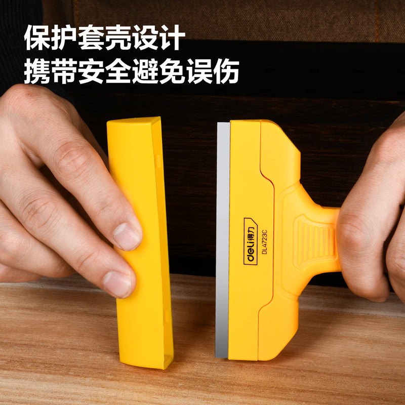 • The Deli DL4723C Cleaning Scraper is a versatile tool designed for efficient cleaning and scraping tasks. With a 145mm blade, it is ideal for removing debris, paint, and other materials from surfaces with precision. The ergonomic handle ensures a comfortable grip, allowing for prolonged use without fatigue. Made from high-quality materials, this scraper is durable and reliable, making it a must-have for both professionals and DIY enthusiasts. Its vibrant yellow color ensures easy visibility in any toolbox or worksite.
