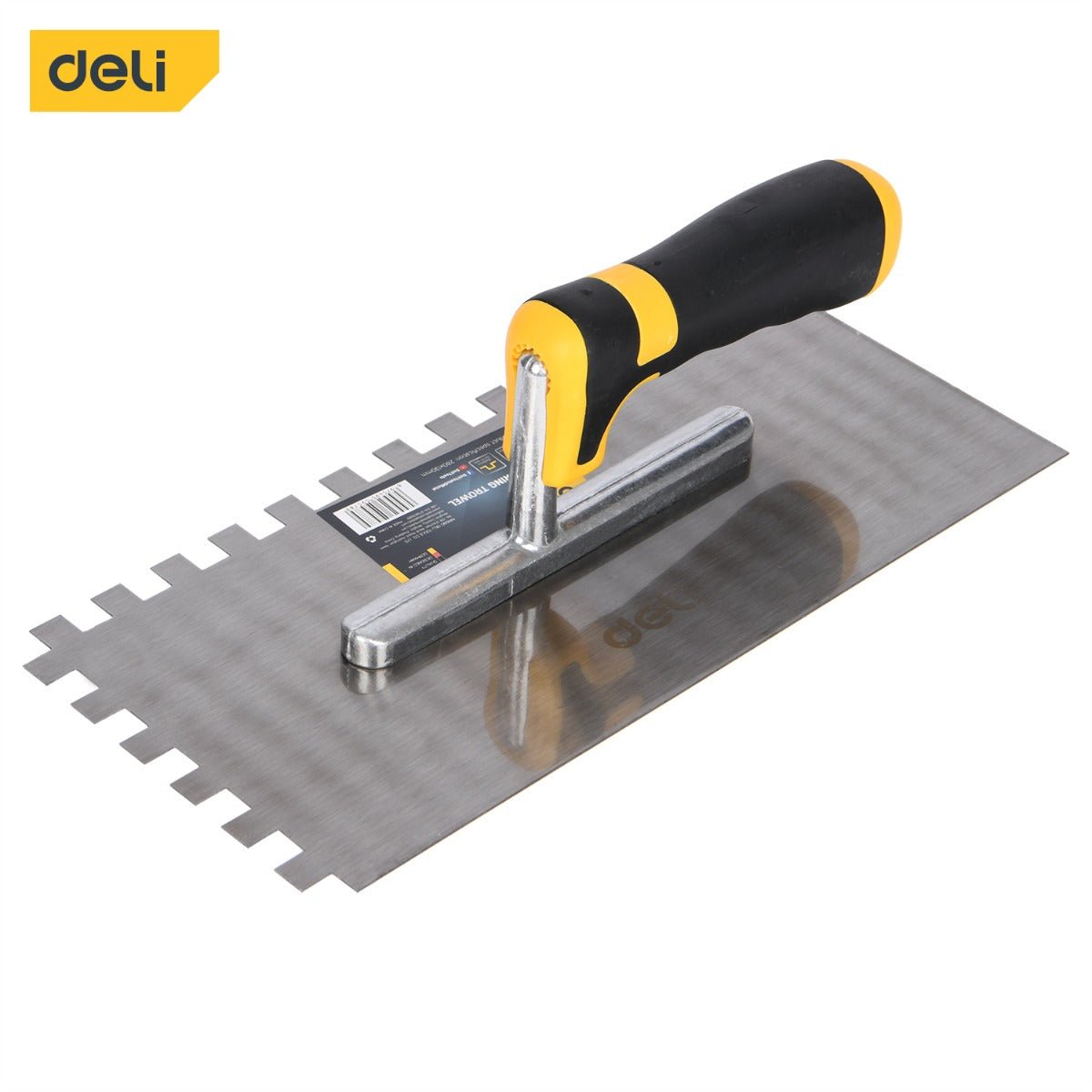 The Deli Plastering Trowel EDL509312 is built for durability and precision in plaster application. Made from high-quality 50# carbon steel, it features a wear-resistant base plate that ensures smooth finishes. The trowel’s size of 280x130mm with a 10x10mm tooth configuration makes it ideal for spreading materials evenly. Its handle is designed with a soft rubber grip to reduce fatigue during long use, making it suitable for both professionals and DIY enthusiasts.