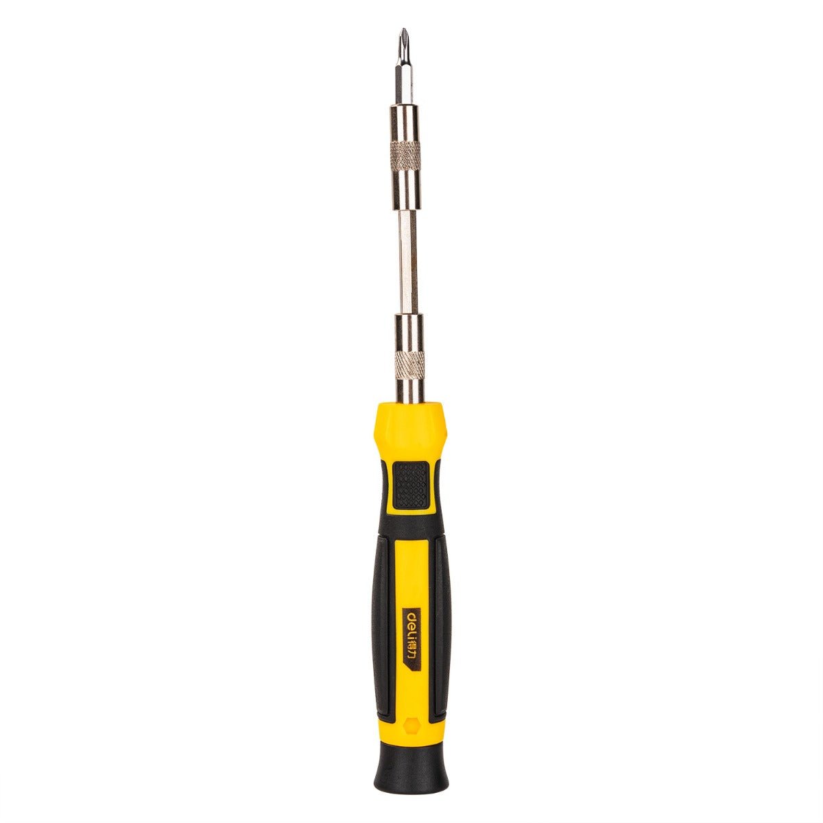• The Deli DL1033D Precision Screwdriver Set is a comprehensive toolkit designed for detailed and precise repair tasks. This set includes 33 pieces, featuring slotted, Phillips, Torx, hex, Y shape, triangle, star, and U shape screwdrivers. The set is crafted from Cr-V steel with a chrome-plated surface for enhanced durability and toughness. The anti-slip handle and extension rod make it suitable for complex applications, while the tweezers add precision handling. This set is perfect for electronics, small appliances, and other delicate repair jobs.