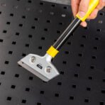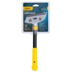 The Deli Scraper 300mm is designed for robust scraping tasks, providing durability and precision. It features an SK5 blade with a heat-treated surface for sharp cutting and long-lasting performance. The aluminum alloy cutter head ensures strength and stability, while the ABS handle offers a comfortable grip for prolonged use. The scraper also includes a metal handle with a thick tail for knocking and tapping tasks. With a blade width of 18mm and thickness of 0.5mm, this scraper is ideal for various heavy-duty applications.