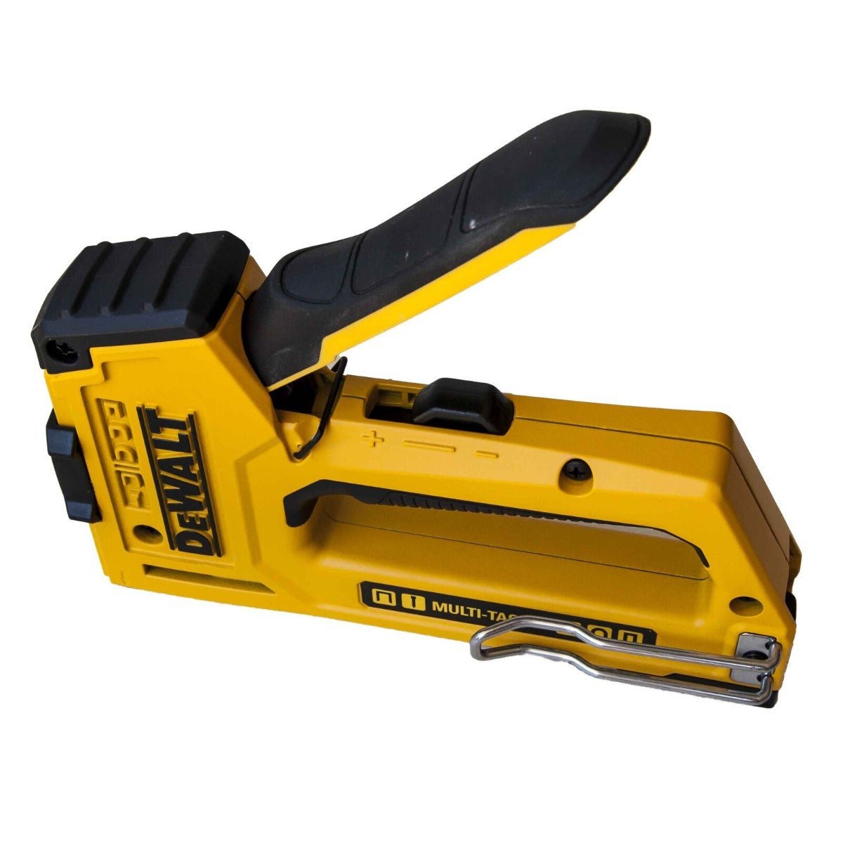 • The integrated wire guide makes fastening cable and wire quick and easy, and the interchangeable belt clip fits on belts and pockets of both left and right-handed users. This multi tacker stapler brad nailer uses DEWALT heavy-duty staples DWHTTA700 series, Stanley TRA700 series, or arrow T50 heavy-duty staples up to 9/16 in. (14 mm) in length. It also uses Stanley 18-Gauge brads up to 5/8 in. (16 mm) in length, Stanley round crown staples CT100 series or arrow T25 series up to 9/16 in. (14 mm) in length, Stanley light duty staples TRA200 series or arrow JT21 series up to 3/8 in. (10 mm) in length, and Stanley flat narrow crown staples CT200 series or arrow T20 series up to 9/16 in. (14 mm) in length.