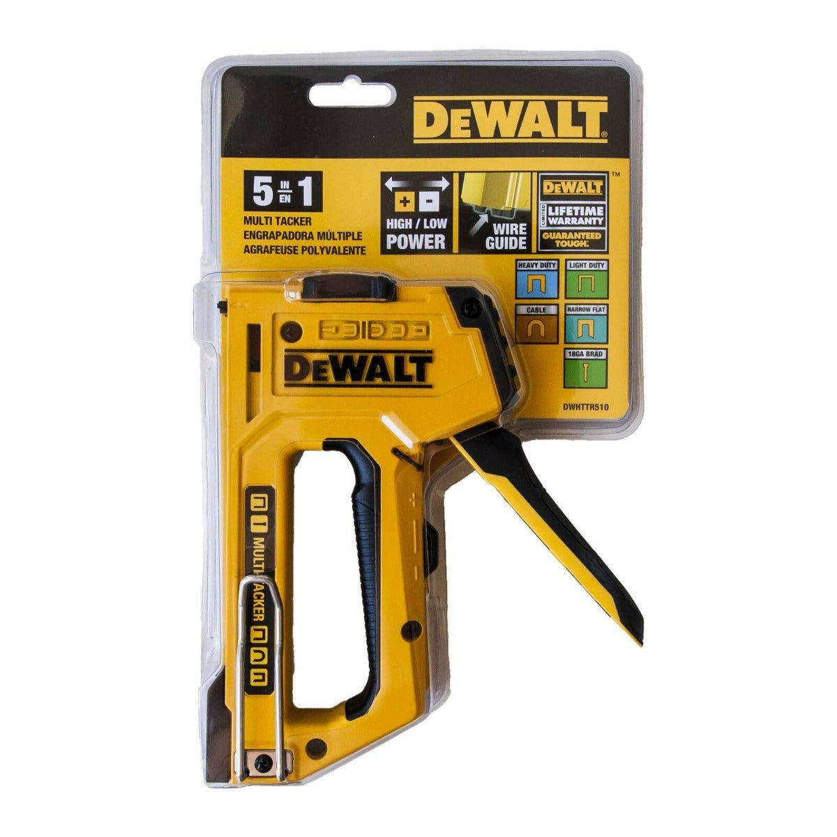 • This Dewalt multi tacker stapler brad nailer comes with the Dewalt DWHTTR510 Multi Tacker SKU, and has a shipping weight of 0.4000kg, with shipping dimensions of 0.080m x 0.050m x 0.080m (shipping cubic of 0.000320000m3). Don’t miss out on this must-have tool for any homeowner or contractor. Order your Dewalt 5-In-1 Multi Tacker Stapler Brad Nailer Dwhttr510 today and get the job done with ease and efficiency!