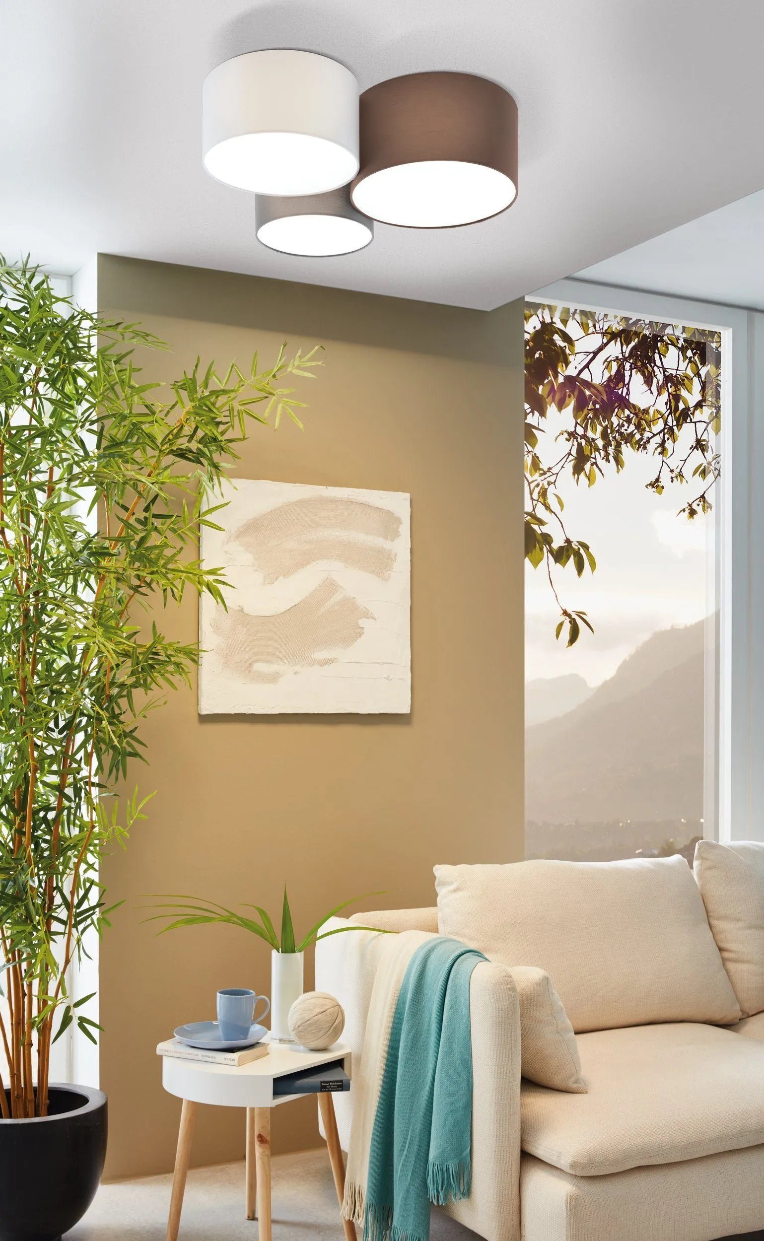 • The EGLO Pastore 97479 ceiling lamp is a stylish and contemporary lighting solution that enhances the aesthetic appeal of any room. The lamp features a unique combination of fabric shades in anthracite brown, white and grey that create a soft and elegant atmosphere. With its white steel body, this lamp is designed to blend seamlessly into modern interiors, providing balanced lighting for living, dining or bedroom rooms.