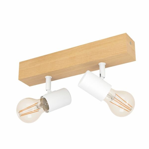 Modern spot in vintage style made of rectangular brown wooden base with a steel arms and a white adjustable steel sockets. Original solution for the interior lighting of your living room, dining room, bedroom, hotel or restaurant.