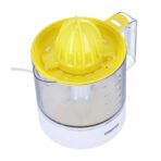 • The Geepas GCJ9900 Citrus Juicer is designed to make juicing quick and effortless. It comes with a 1.0-liter plastic cup and features double squeezing cones for efficient juice extraction. The juicer has a start/stop function activated by pressing the cone, making it easy to operate. It also includes a removable juicer container, a transparent lid for easy monitoring, and a jar lock to prevent spills. Its bi-directional twist function ensures maximum juice yield, rotating both clockwise and anticlockwise. The compact design and non-slip feet make it stable and suitable for any kitchen. With a power range of 25-40 watts, it is energy-efficient and ideal for everyday use.