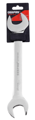 • The Geepas Open End Spanner 25*28mm (GT59188) is a robust tool designed for various maintenance tasks, offering a secure grip and precise fit. Its construction ensures durability and long-lasting performance in demanding environments. This spanner is ideal for tightening or loosening nuts and bolts efficiently, making it a reliable choice for both professional and DIY use.