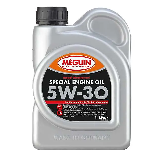 • Meguin Special Engine Oil SAE 5W-30 is a modern high-performance motor oil developed with selected HC base oils and tailored additives. It is specifically formulated for gasoline engines prevalent in Asian and American markets. This oil maintains engine cleanliness, offers high shear stability, and minimizes wear, ensuring rapid oil penetration and smooth engine operation under all conditions. It is well-suited for the high demands of modern engines. Always refer to the manufacturer’s instructions before use.