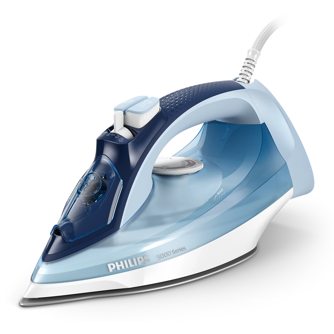 • The Philips 5000 Series Steam Iron DST5020/21 is built to perform day after day. With its anti-scratch SteamGlide Plus soleplate, high consistent steam output, and integrated calc-clean, this high quality iron gives you performance that lasts. It features a powerful 2400 W power output, a 40 g/min continuous steam, and a 180 g steam boost to tackle even the toughest creases. Designed for convenience, it comes with a 320 ml water tank capacity, is suitable for tap water, and includes a drip stop feature to prevent water stains. The extra stable heel rest and large filling hole make it easy to use and maintain.