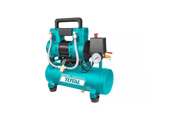 Efficient 1100W air compressor with 6L tank, oil-free system, and low noise.