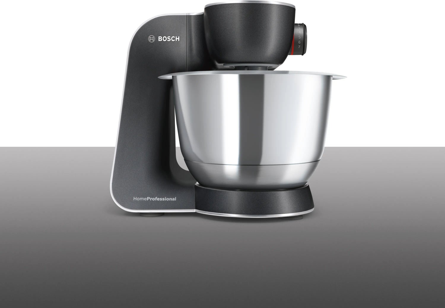 • The Bosch Series 4 Kitchen Machine MUM 5 is an essential addition to any modern kitchen. With its powerful 1000 W motor, it is designed to handle a variety of cooking and baking tasks effortlessly. This sleek black and silver machine not only looks stylish but also offers a range of innovative features that make food preparation easy and efficient. Whether you’re kneading dough, whipping cream, or mixing ingredients, the MUM 5 ensures consistent and reliable performance. Its robust construction and quality materials ensure durability, making it a long-lasting companion for your culinary adventures.