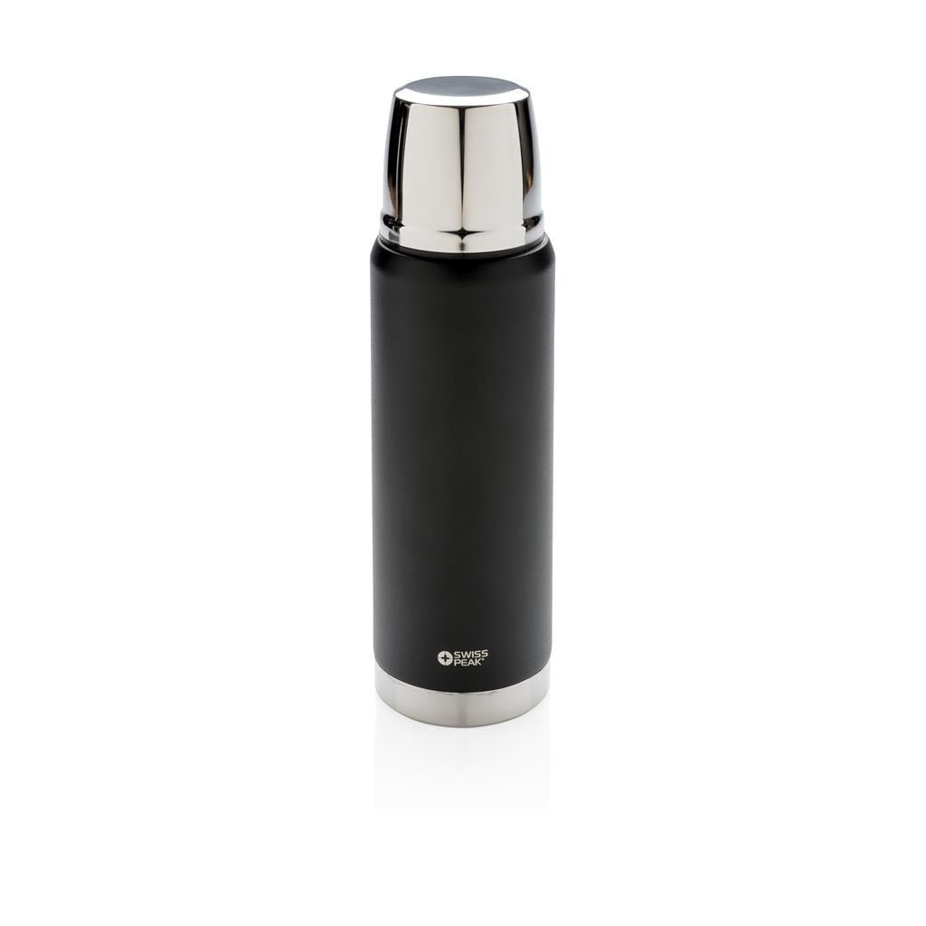 • The Swiss Peak Elite series are with vacuum insulation and double wall 18/8 grade stainless steel. The powder coated black colour is built to last! No fading or cracking here! The inner wall is plated with copper for ultimate conductivity to keep drinks hot for 8 hours and cold for 24 hours. Hand washable and leakproof. Content 500 ml.
