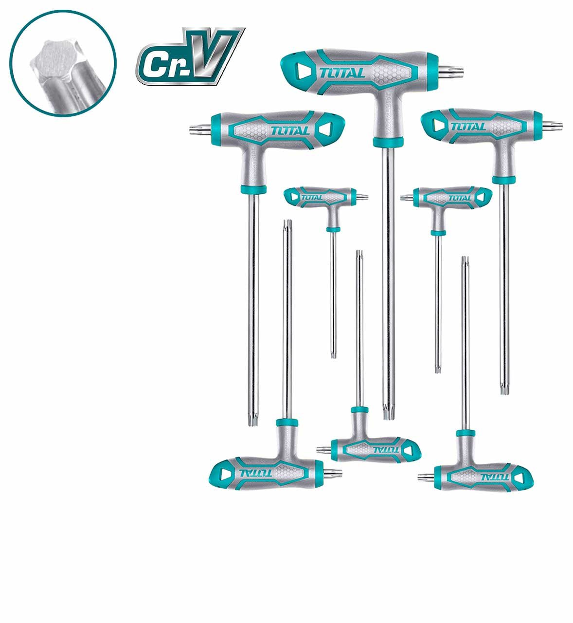 • The THHW8083 8 Pcs T-handle Torx Wrench Set offers a versatile solution for tightening and loosening Torx screws with ease. This set includes eight different sizes, ensuring you have the right tool for any task. Made from high-quality Cr-V steel, these wrenches are designed to withstand the rigors of heavy-duty use, providing durability and strength. The ergonomic T-handle design enhances comfort and grip, allowing for increased torque and precision during use. Whether you’re working in automotive repair, carpentry, or DIY projects, this set is an essential addition to your toolkit.
