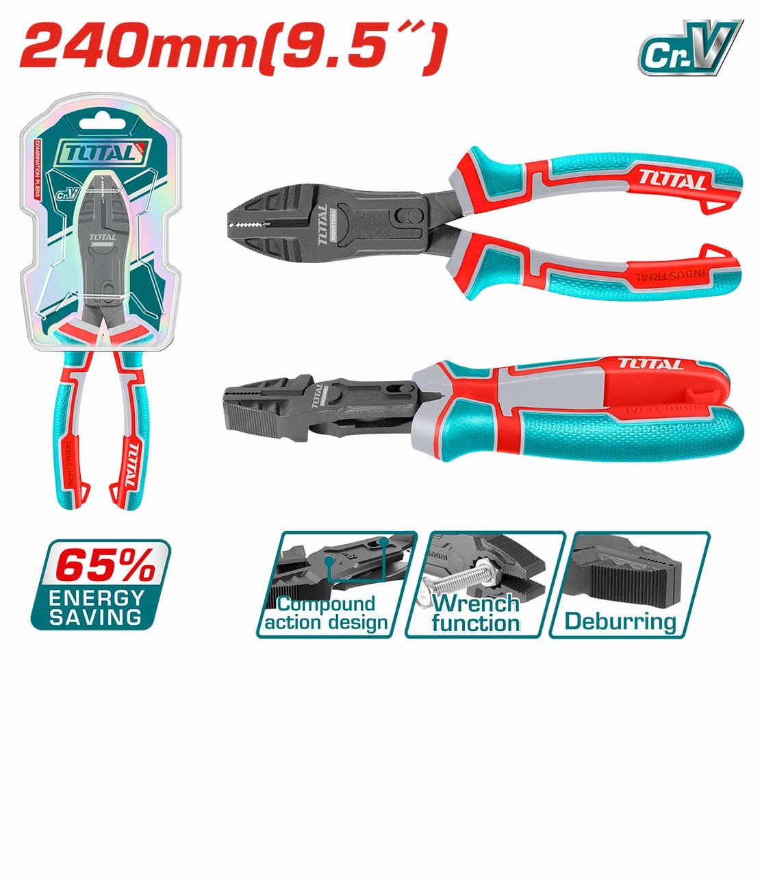 • Industrial-grade combination pliers made with Cr-V steel, offering superior durability and energy-saving design.