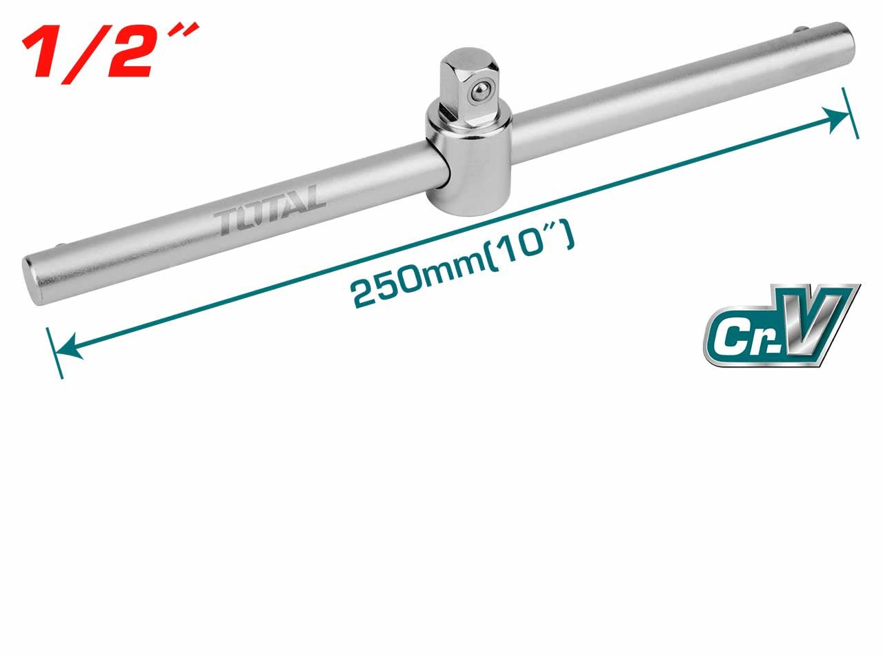• The THTSTB12106 Dr. Sliding T-Bar from TOTAL Tools Malaysia is an essential hand tool designed for industrial applications. Crafted from premium 50BV30 Chromium-vanadium steel, this tool ensures durability and reliability in various mechanical tasks. Its heat-treated and chrome-plated finish provides superior corrosion resistance, making it ideal for heavy-duty use. With a square drive size of 1/2 inch, it offers a comfortable grip and enhanced leverage, allowing for precise torque application. Whether you’re a professional mechanic or a DIY enthusiast, the THTSTB12106 is engineered to meet high-performance standards, ensuring efficiency and safety in every use.