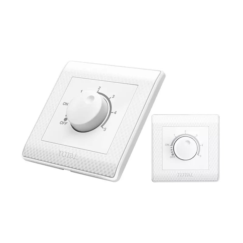 • The Total THESFC02501 250 W Fan Controller is a compact and efficient device designed to control the speed and operation of fans in various applications. It fits seamlessly into standard electrical boxes with its dimensions of 86×86 mm and an installation size of 60 mm, making it ideal for residential and commercial settings. With a power rating of 250W, it supports fans with lower power requirements and operates at 220V~, ensuring compatibility with most electrical systems. The fan controller allows for precise speed adjustments to optimize airflow, reduce noise levels, and enhance energy efficiency. Its user-friendly interface makes it easy to select the desired fan speed, providing smooth and reliable control. Additionally, it is packaged in a protective plastic bag to ensure it remains in pristine condition during transportation and storage.