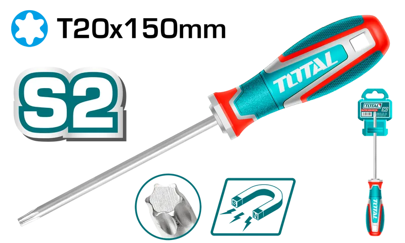 • The TSDT20150 Screwdriver T20*150 is a high-quality tool designed for precision and durability. Ideal for both professional and home use, this screwdriver features a star tip that ensures a firm grip on screws, reducing the chance of stripping. Its ergonomic handle provides comfort during extended use, and the durable steel construction guarantees longevity. Whether you are assembling furniture or performing repairs, the TSDT20150 is the perfect addition to your toolkit.