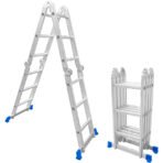 • The Wadfow WLD7H43 Aluminum Multi-Purpose Ladder is an essential tool for any household or professional setting. Its robust construction ensures durability and safety, allowing it to be used for various tasks, from reaching high shelves to conducting maintenance work. This ladder is designed with user convenience in mind, featuring a lightweight aluminum frame that makes it easy to carry and store. With its innovative multi-purpose design, this ladder can be configured into different shapes to meet your specific needs, whether it’s as a step ladder, extension ladder, or even scaffolding.