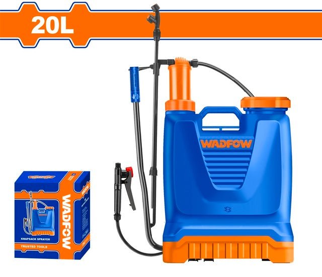 The WADFOW Backpack Sprayer 20Lit (WKS1520) is an essential tool for efficient and effective spraying of large areas. Designed for both professional and personal use, this sprayer is equipped with a robust fiberglass tank capable of holding up to 20 liters of liquid. Its adjustable nozzle allows for a versatile spray range from mist to jet, catering to various spraying needs. This durable sprayer is perfect for garden maintenance, pest control, and agricultural applications, ensuring even and thorough coverage. The ergonomic design includes comfortable shoulder straps, making it easy to carry and operate for extended periods without fatigue. With a pressure capacity of 4.5BAR, it delivers powerful performance for all your spraying tasks. Packaged in a vibrant color box, the WADFOW Backpack Sprayer is both practical and visually appealing, making it a valuable addition to any toolkit.