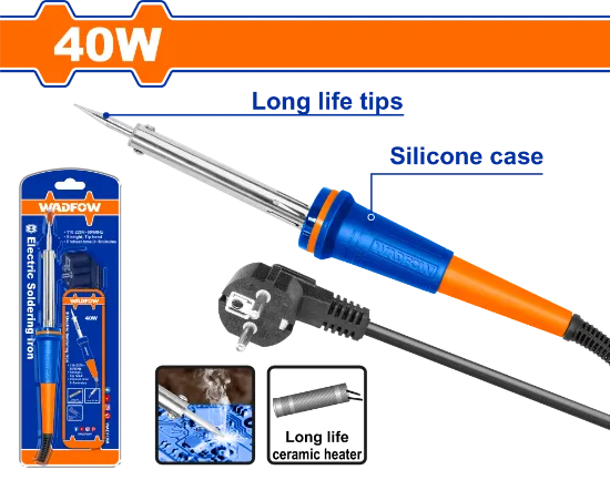 Efficient 40W soldering iron with quick heat-up, long life tip, and practical design.